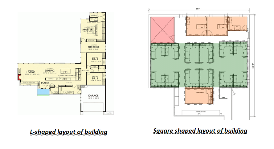 Symmetrical design is much safer than asymmetrical design. Therefore, the design should be square or rectangular instead of L, E, H, T – shaped. The length of the rectangular design should not exceed twice the width.